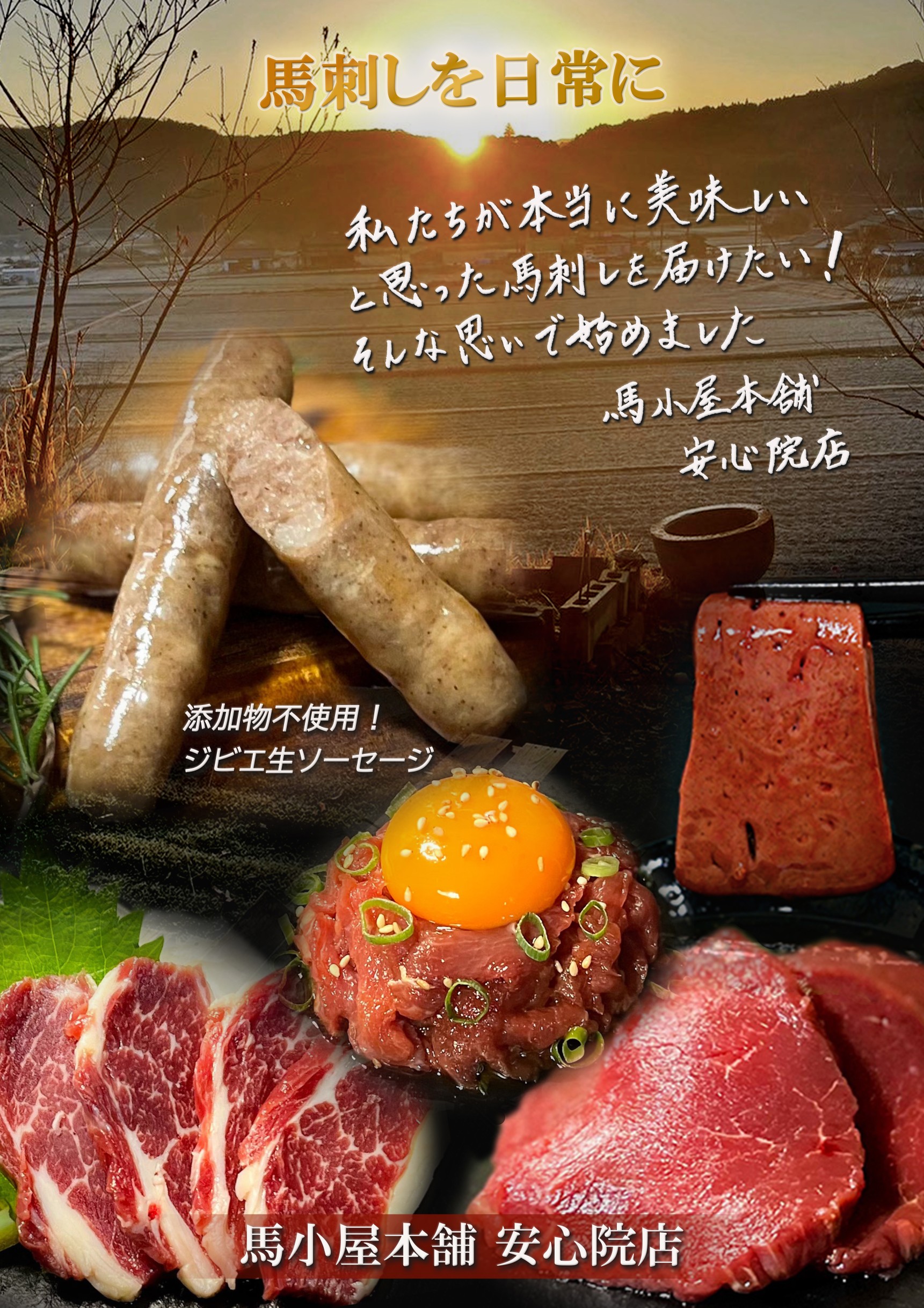 安心院店でハーブ馬肉をはじめ、国産ジビエ認証を取得した施設で添加物を一切使用せずに作った安心安全な「ジビエ生ソーセージ」を取り扱っております。
